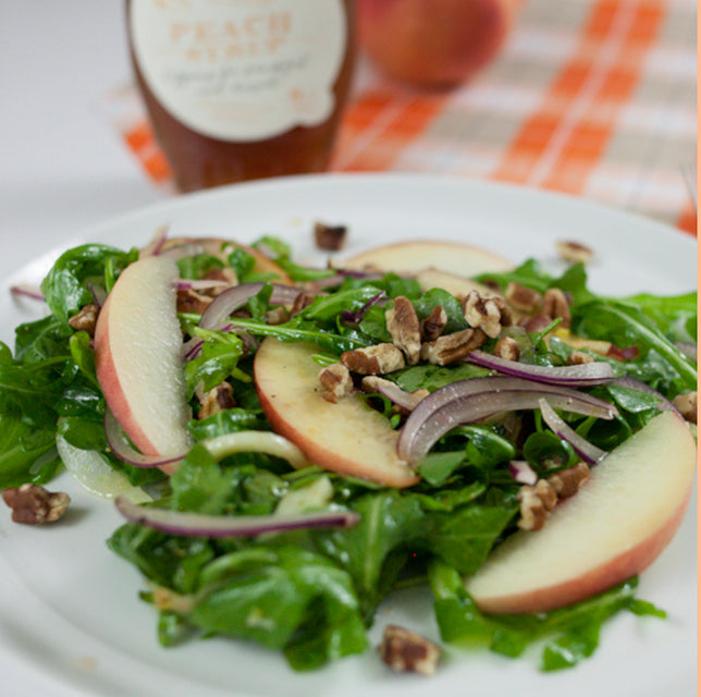Mix all ingredients together in a bowl for the Peach Dressing, set aside.