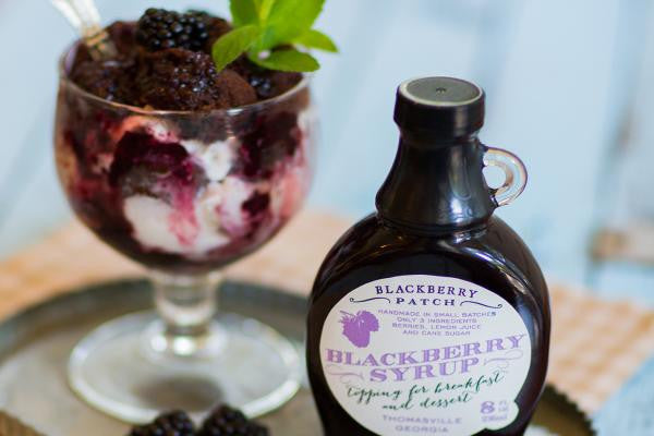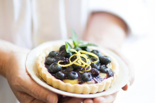 Lemon Curd Tarts Drizzled with Blackberry Patch Blueberry Syrup