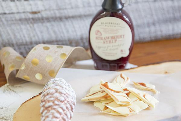 Preheat the oven to 400 degrees and line 2 baking sheets with parchment paper and set aside. In a mixing bowl, combine the flour, sugar, baking powder and salt. Add the butter and toss with flour. Add the egg, buttermilk and vanilla. Do not overmix - mix until just combined. Fold in the white chocolate chips and drip the 1/4 cup Blackberry Syrup in places while folding.